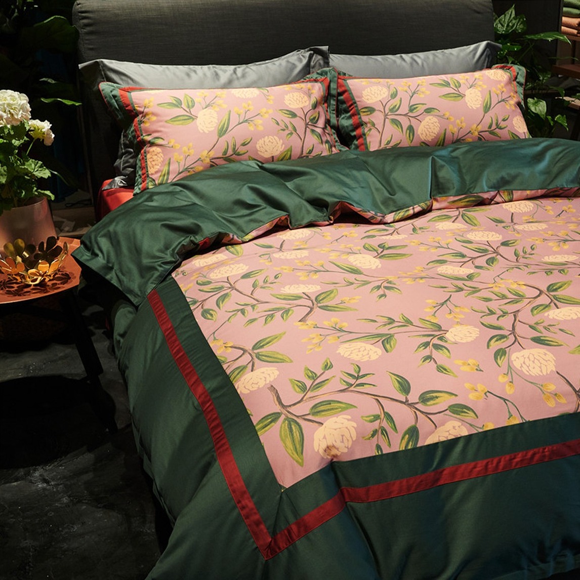 很美的一款美式田园四件套,复古而惊艳的配色,结合精致的印花和高档的面料,体验舒适又充满艺术美感,很赞。