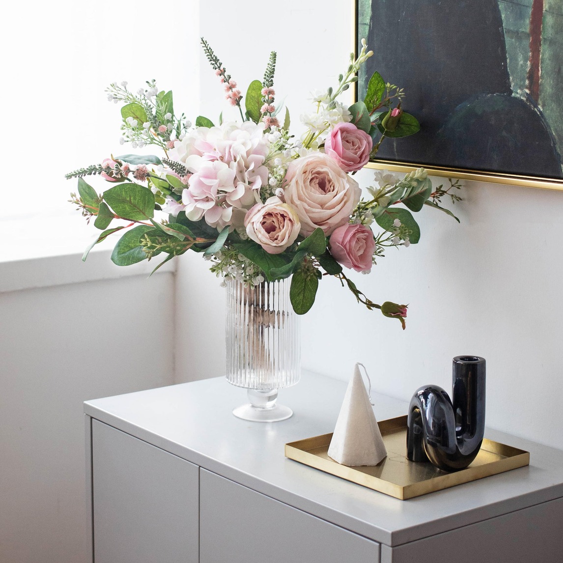即便是平淡无奇的玄关,也可以通过搭配推陈出新,达到令人惊艳的效果。依旧粉嫩的花见花开,搭配精巧的高脚花瓶,有一种独具一格的美。