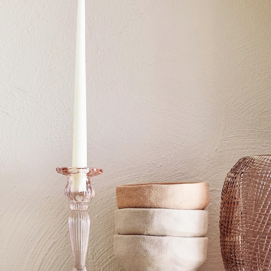 现在非常火的赤贫风装修,其实并不是代表了家中空无一物,而是多选用不加过多修饰的装修元素,例如陶土等。简单的玻璃烛台在细节处增强质感,搭配上带有痕迹的水泥墙面,更显得精致。