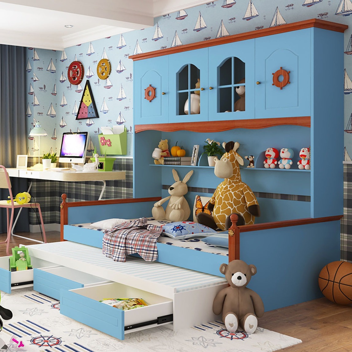为孩子打造一间地中海风格的卧室,天蓝色的儿童床衣柜一体设计,采用优质木材,上下床设计妈妈陪睡、二胎也妥妥的,隐藏式三抽拖床,平时放在床下不占空间,自带储物空间,小户型值得拥有,让整个房间看起来清新和谐...展开