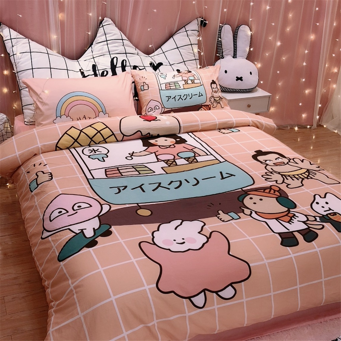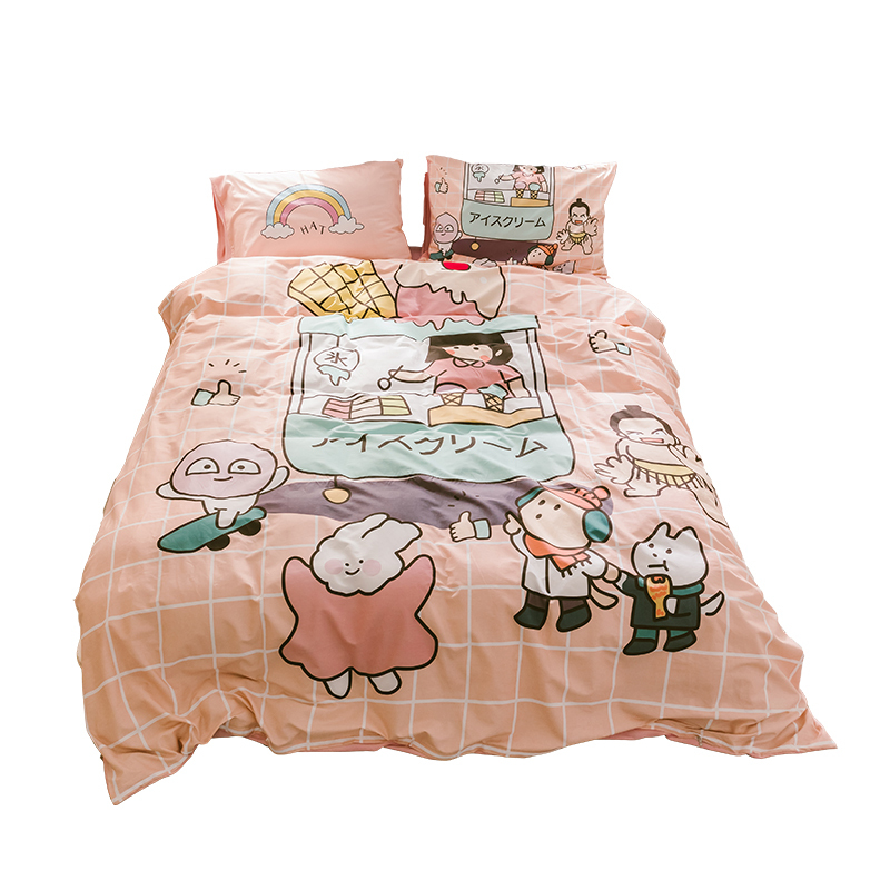 颜值很高的卧室,选用少女心炸裂的全棉四件套,甜美的粉色,结合让人心情愉悦的卡通图案,让房间备显温馨。