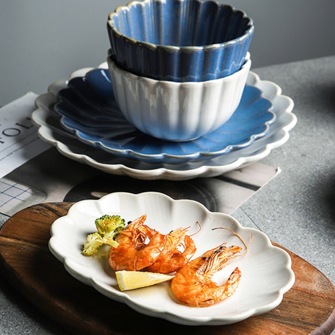 独特的花型陶瓷盘,造型立体又大方,可以盛放不同的美食,提升菜肴的颜值和味蕾,窑变工艺烧制,耐用有韵味。