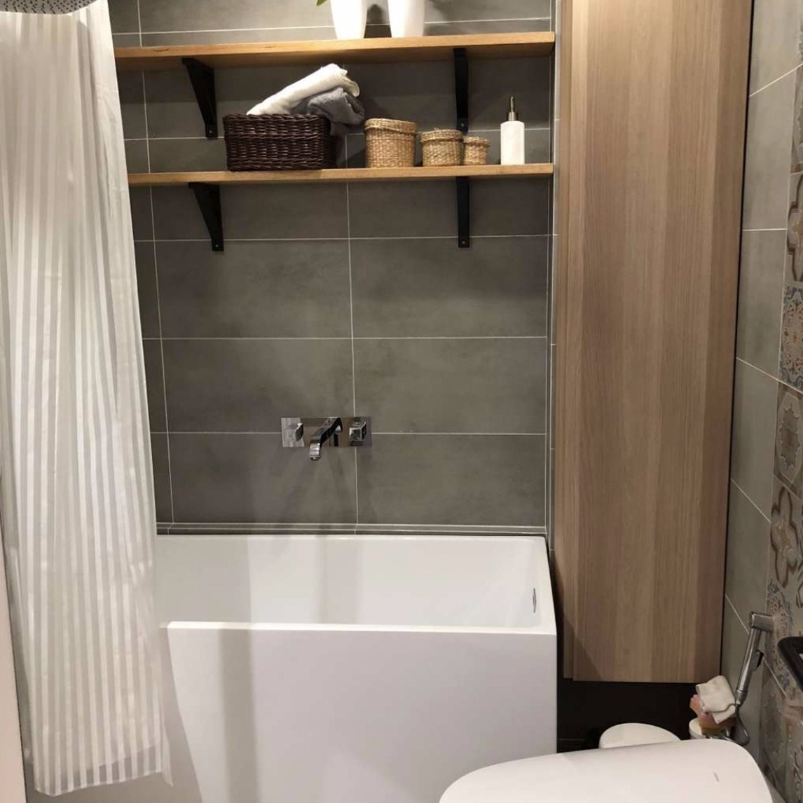 小型的洗手间户型,经过合理的设计之后,装上了迷你的小浴缸,同时利用墙体的空间,各种洗漱用品都能整齐的放置起来,打造出超级舒适的洗漱空间。