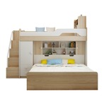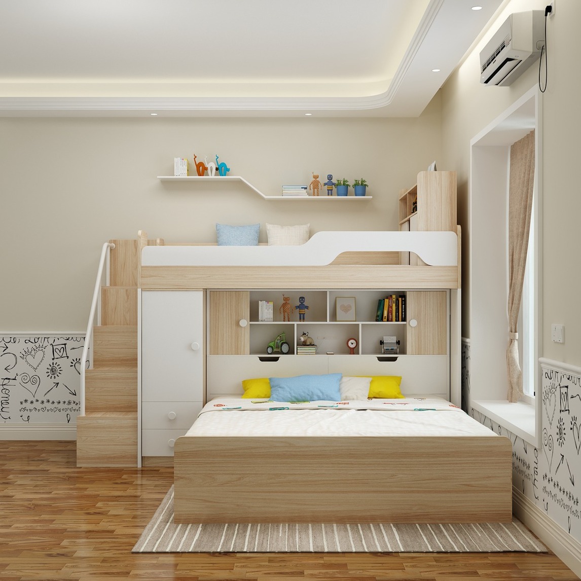 上下床的设计,小小的空间里,放了够用的床,剩下的地方,陪伴ta学习进步,一张床满足全家对大容量储存需求