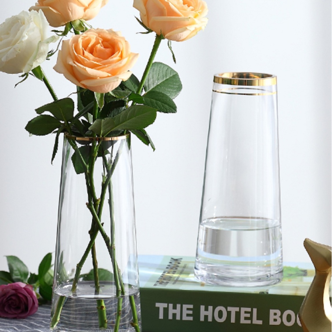 朴实无华的玻璃花瓶,搭配喜爱的花束,赋予生活的一种新鲜感。剔透瓶身,透明清晰可见,造型优雅,清新风格。