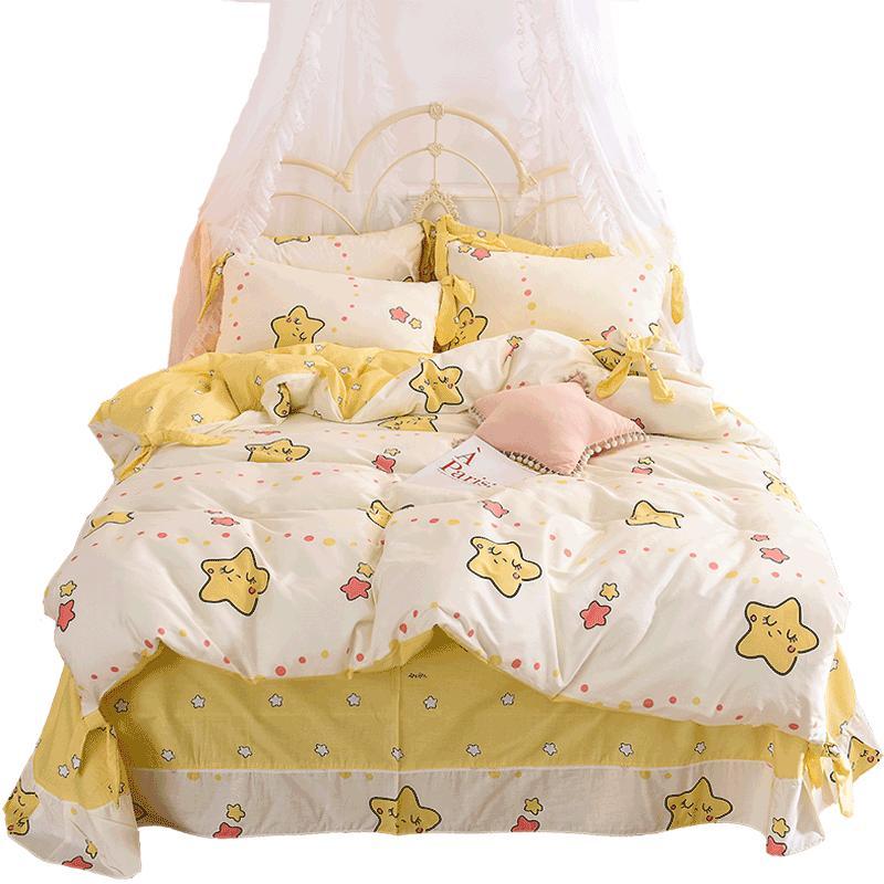 推荐这款全棉星星四件套,全棉加密面料,柔软贴身,干爽透气,被角兔耳朵设计,增添一抹俏皮感,星星图案更是让人充满梦幻。