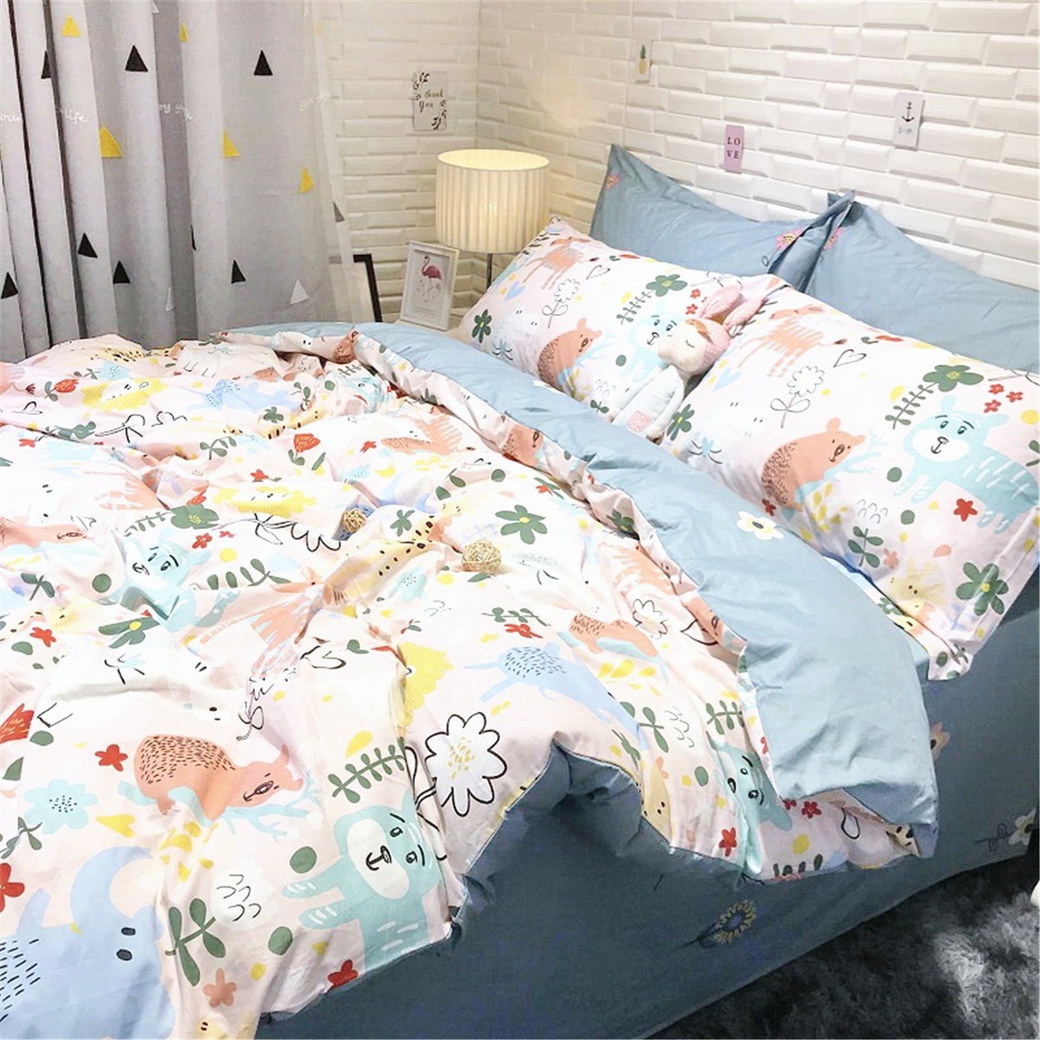 这款专门为儿童设计的床上用品四件套,简直太合小朋友们的心意了,通过用多种暖色系的颜色点缀各种动物卡通图案,勾画出一幅动物世界的场景,让小朋友充满了对动物世界的好奇,很有童趣的主题卧室!