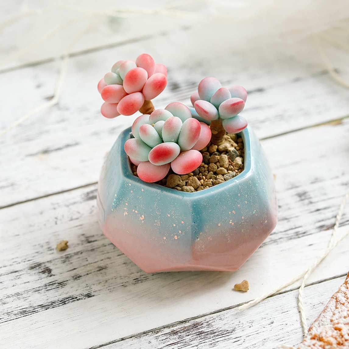 星斑附着于冰裂盆体表面,如同万千繁星洒落于冰原大地之上,使用这样的花盆种植小多肉,让园艺世界更富灵动气息。