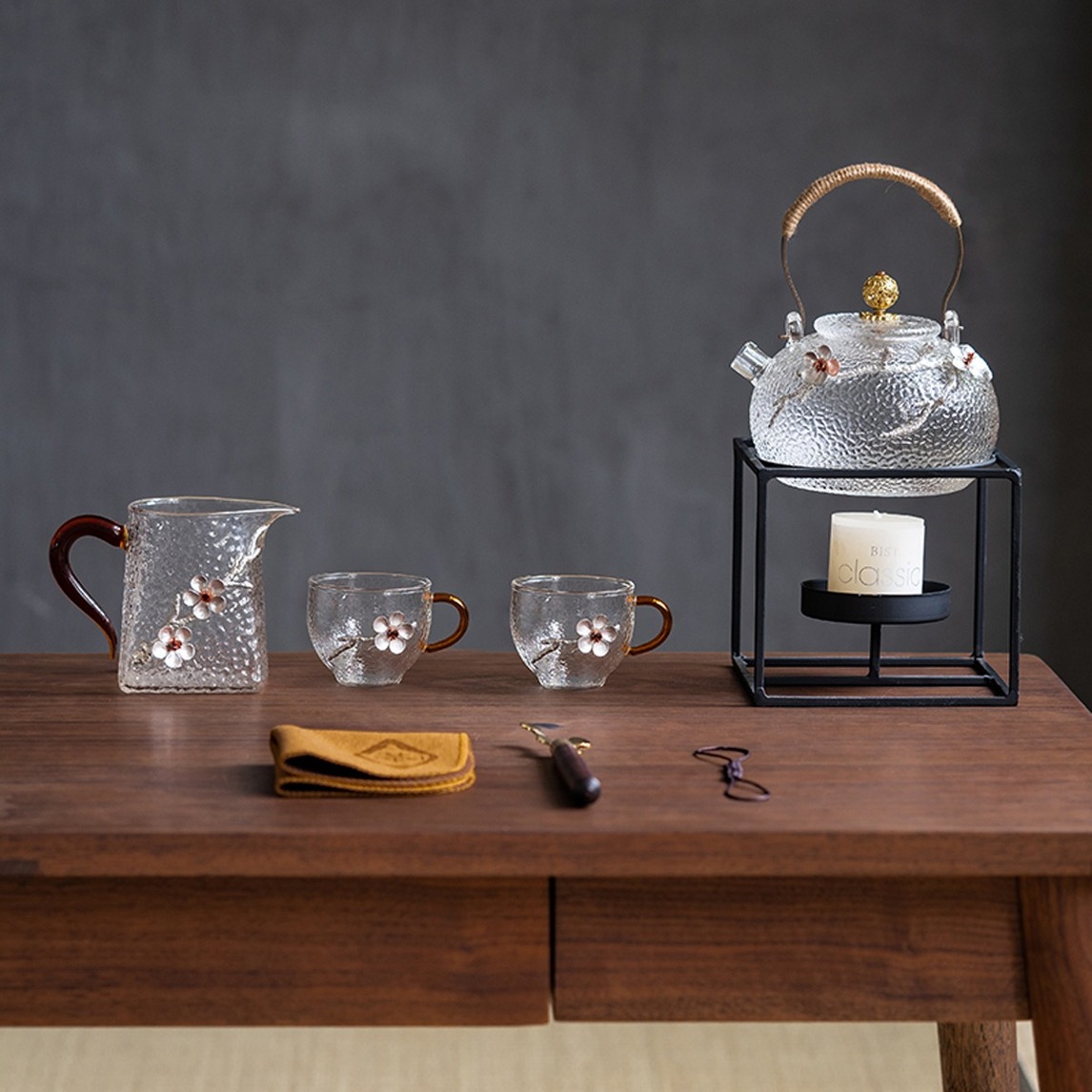 简约设计的玻璃茶壶,锤纹表面,搭配上锡花点缀,铜制提梁,复古美观,小炮嘴设计,出水有力,断水利落,并配置螺旋不锈钢圈过滤,隔离茶渣。