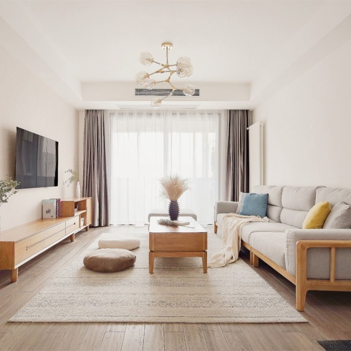 先唠唠我家的客厅~我家整体色调是原木色,本来装修之前是奔着北欧风去的,装完感觉很日式和风。为了环保,减少甲醛的危害,木地板和活动家具如茶几、电视柜都是用的纯实木,沙发是布艺和纯实木支架。实木材质敦实自...展开