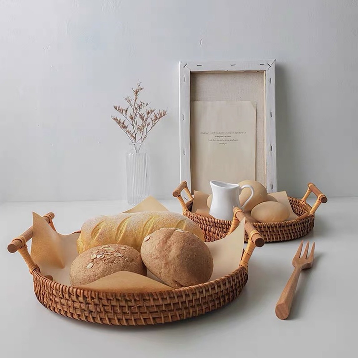 面包糕点伴侣,再加上烘焙油纸,你的不二之选;或者放点小水果和零食,作为水果零食盘也是明智之举,一篮多用,颜值高配。