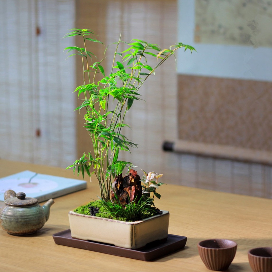 净化空气选绿植,盆栽可以起到装饰,这款盆栽可以与绿植起到很好的搭配效果,凤尾竹米竹姬翠竹菖蒲组合盆景,十分悠闲,让人心情舒适。