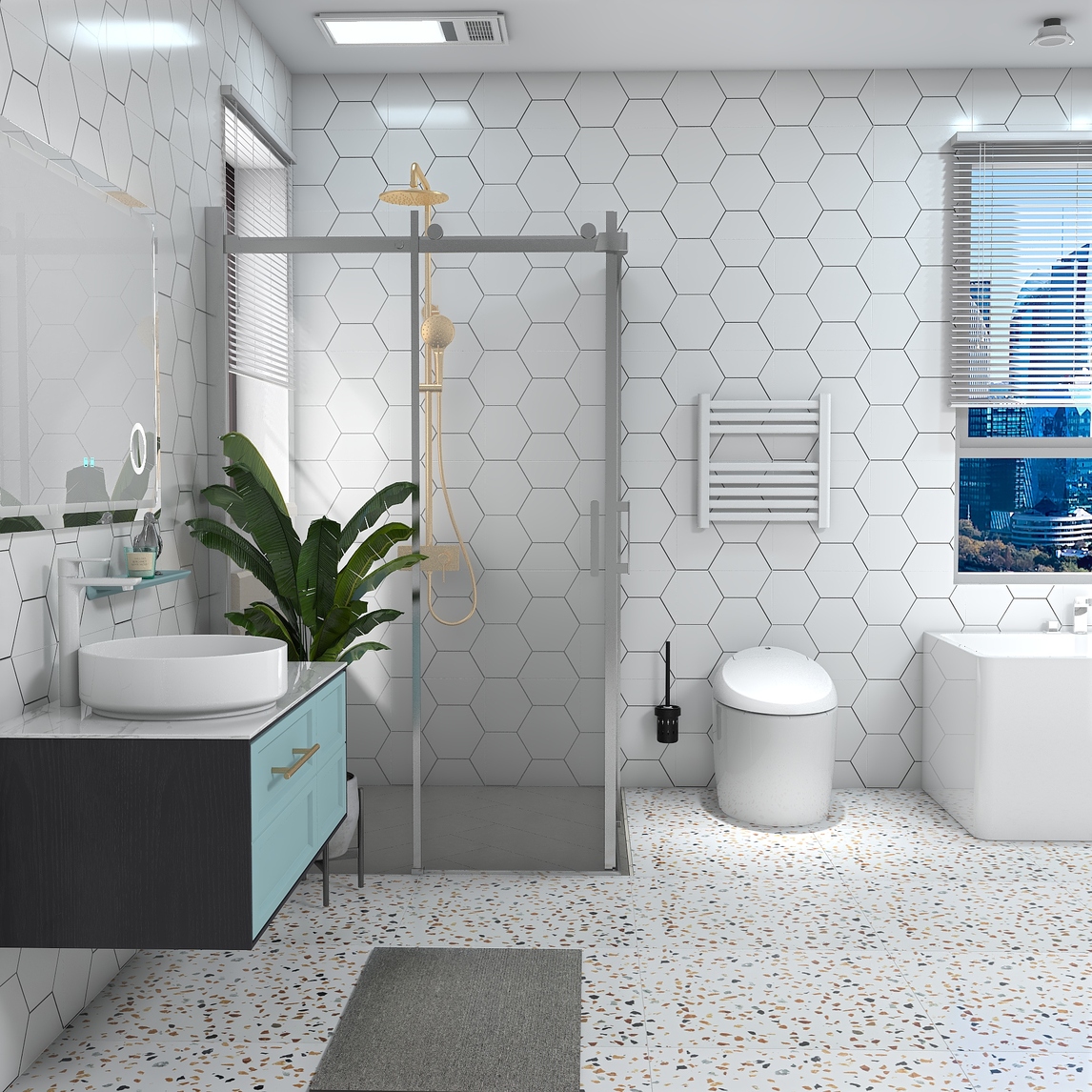 不想要大众的风格,又不想太另类的风格?那么这个卫浴空间应该适合你,墙砖选用六边形小白砖,地砖则可以选用水磨石,个性又好看。浴室柜可以选择ins风格的浴室柜,再选择金色花洒跟浴室柜的把手做呼应,一点小心...展开