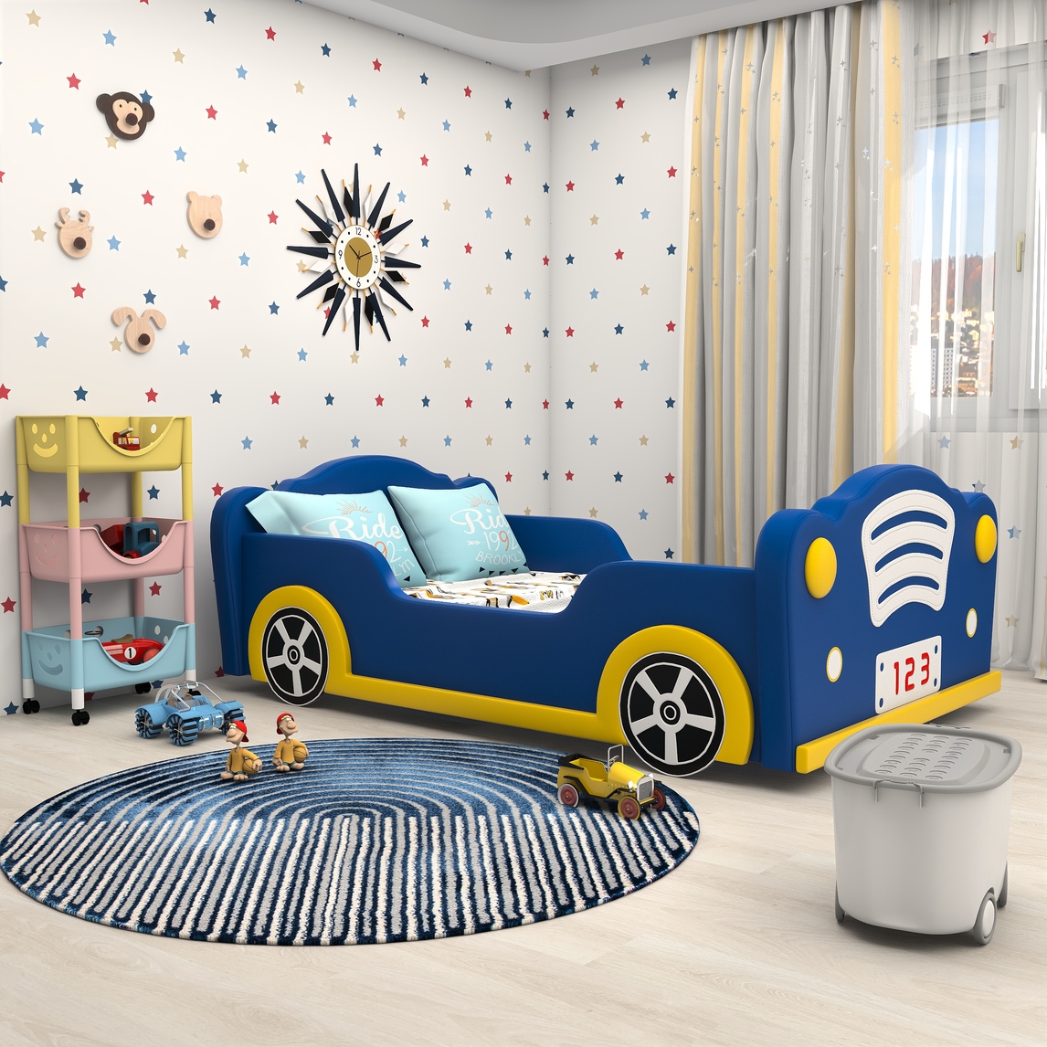 经典的汽车复古造型,酷酷的蓝色充满活力,床四周带护栏十分安全,床身造型圆弧无菱角,贴心的全方位保护,超适合喜欢酷酷汽车的男孩。