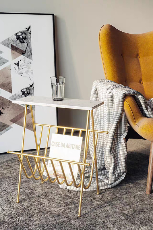 感觉茶几太大了,总有种笨重的感觉,因此,我选择了这款小巧的边几。铁艺搭配大理石的设计,质感满满!下方镂空收纳架的设计,可以收纳书籍等,收纳能力也是杠杠的!