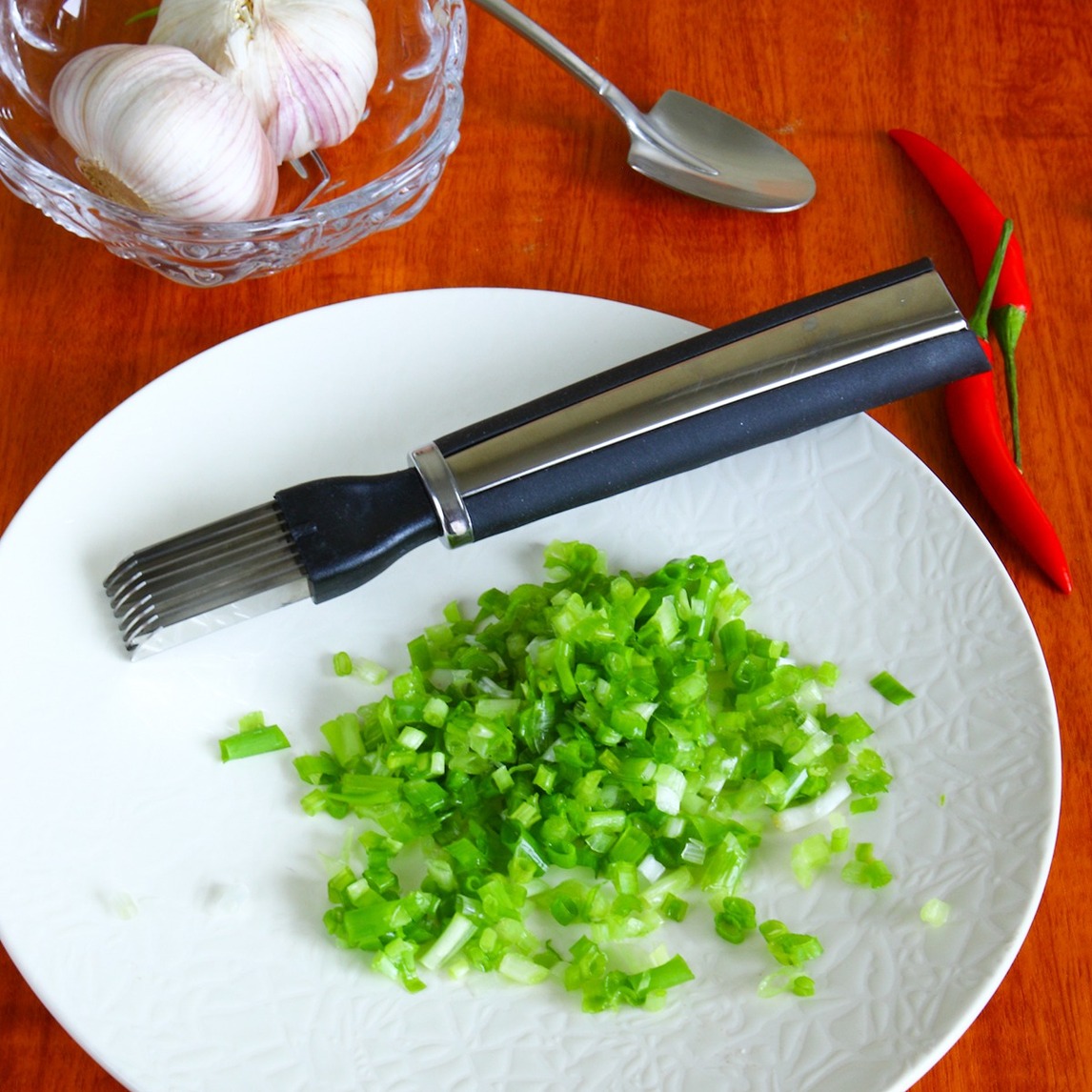 大葱是很多人经常吃的,要切成细丝,如果用菜刀,有点考验刀功,试试这个神器吧,轻轻一划,葱丝就切好了,太方便了。
