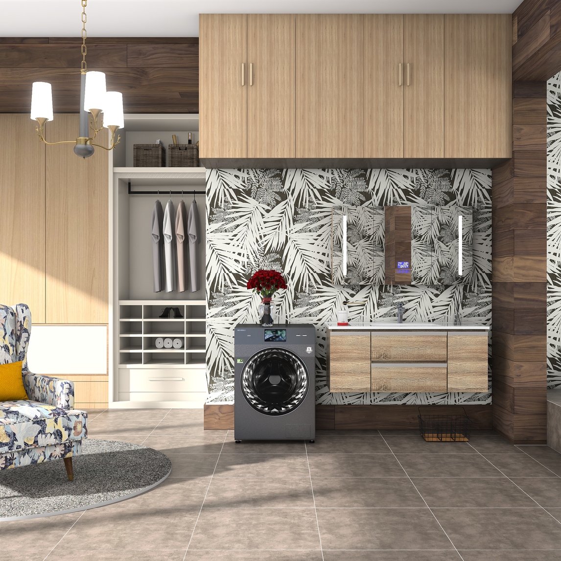 美式乡村风格的洗衣房,采用大面积的原木色,营造自然质朴的气息。比佛利洗烘干一体洗衣机,金属钛的外观,整体外形达到了艺术与工业的精妙平衡,来源于意大利美学设计,赋予比佛利人文气质,堪称美学与尖端科技的艺...展开
