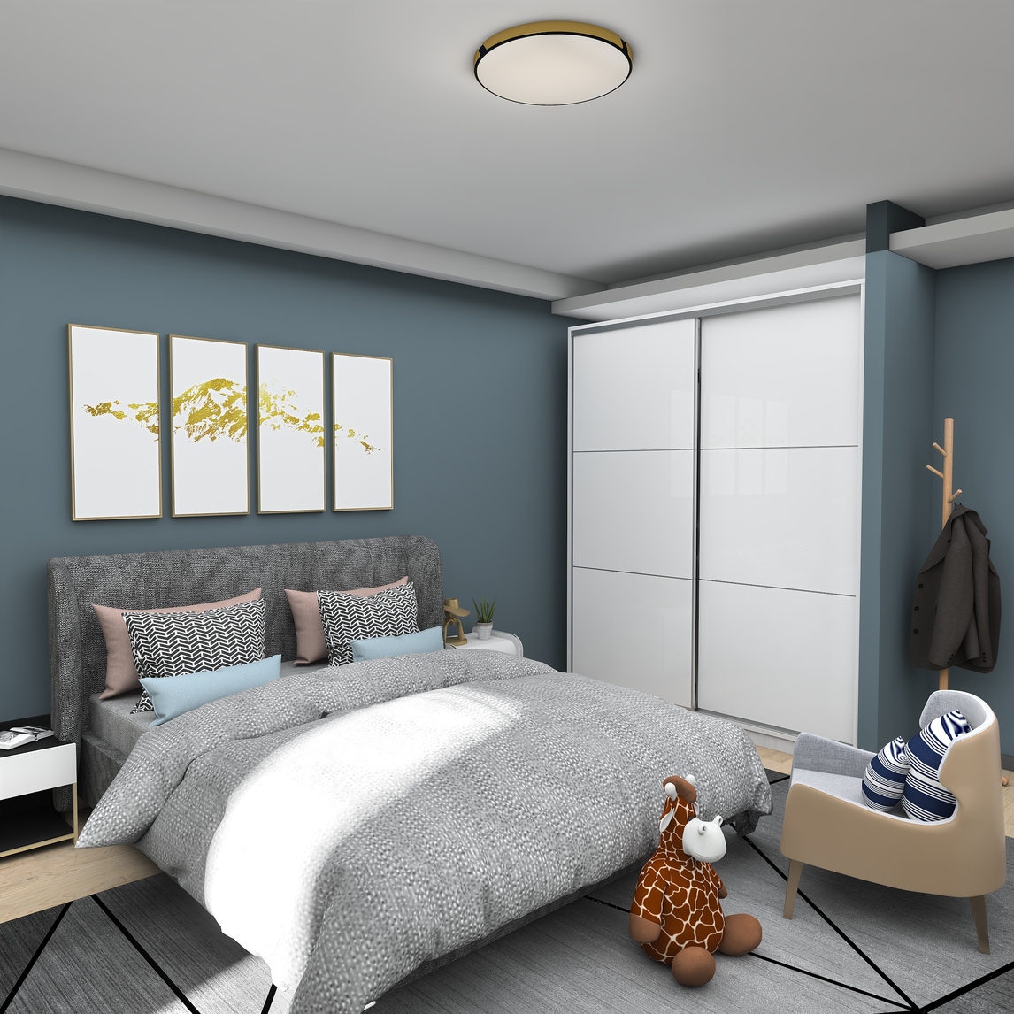 一个卧室最重要的就是带给人舒适感,这样的房间布置能让人置身事外,忘却心中烦恼。选取了亮度柔和不刺眼的吸顶灯,在外型上和现代风的家具更搭。