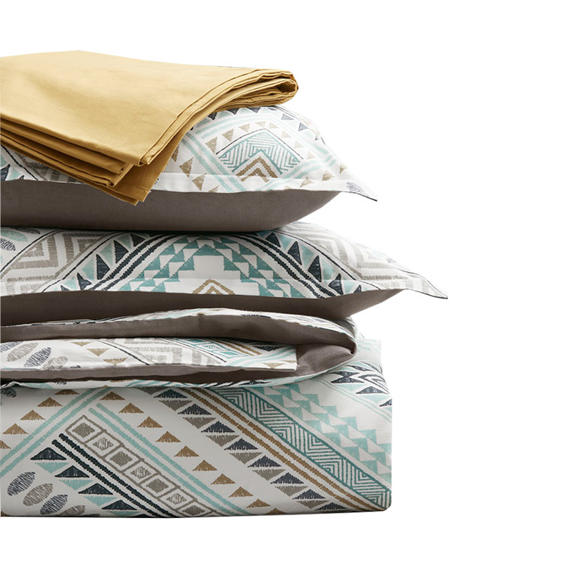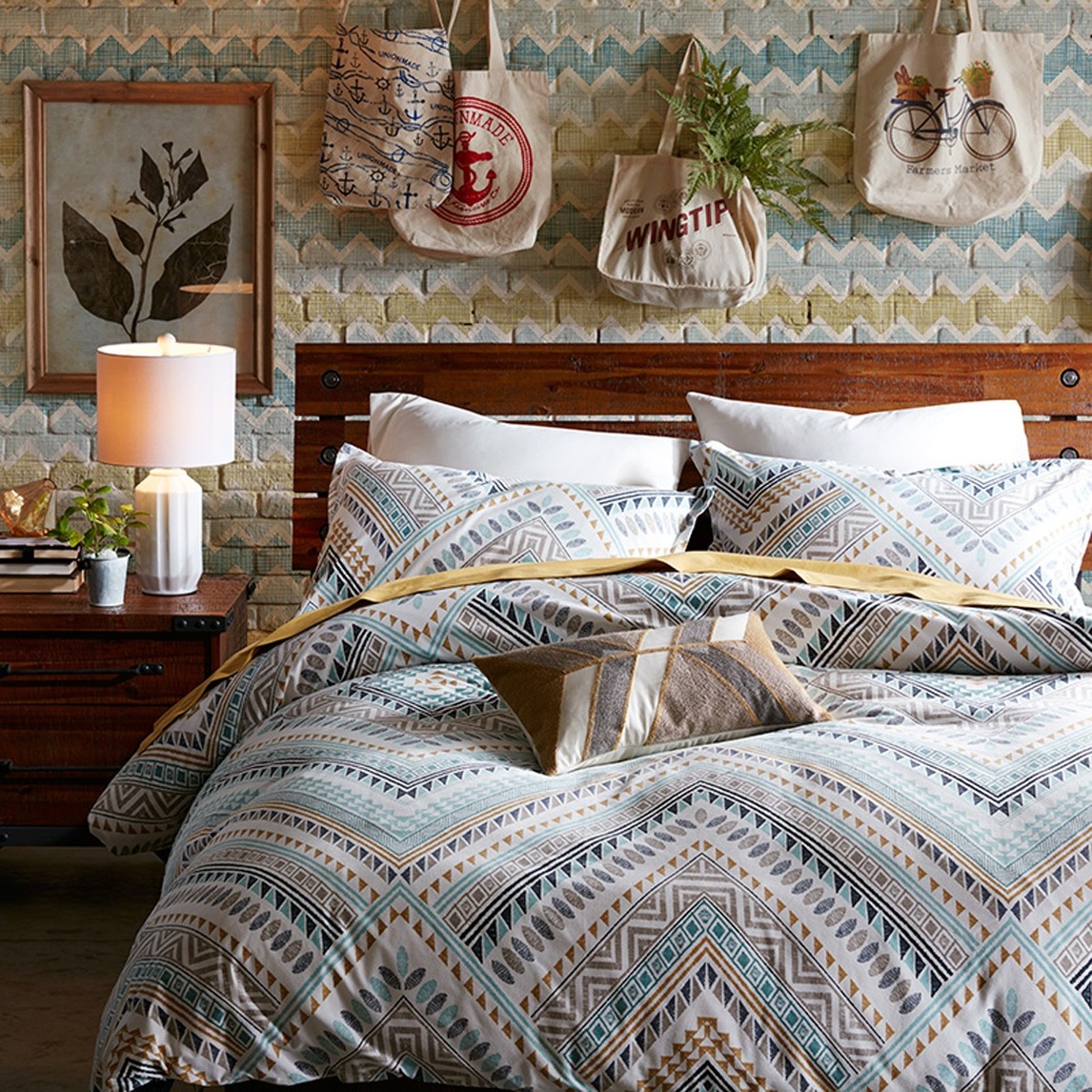 这种是简约美式的格调,比传统美式要更加的休闲时尚,比较符合现代人的审美观,磨毛的四件套盖着很舒服,整体搭配也很惬意。