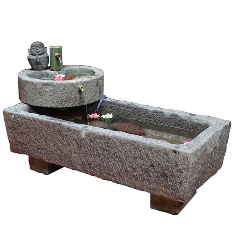室内的摆饰,那流动的水景,带给人的不仅仅是视觉上的冲击。放置一盆小花,石槽的恒久带给你鲜花另外的一种美