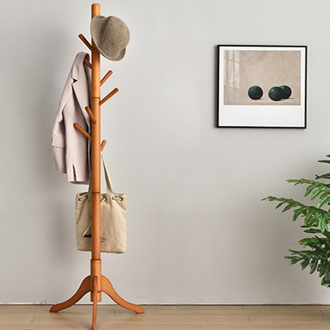 原木风的热度居高不下,连带着原木风的衣帽架也格外受欢迎,要是只有最基本的收纳需要,这款木色衣架就很适合带回家了,衣帽间、玄关、书房、卧室都能放,还衬得旁边的家具也特有韵味。