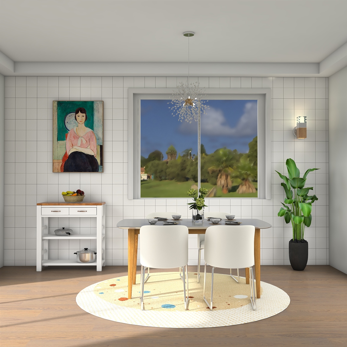 设计师以日式风来设计的餐厅,原木与大理石完美相搭,给人一种舒适的视觉体验感,墙面采用田字格的白釉砖,然后再搭配上一幅装饰画,瞬间就带来了些许艺术气息,而原木的地板与一旁的绿植盆栽都有着大自然的象征,使...展开