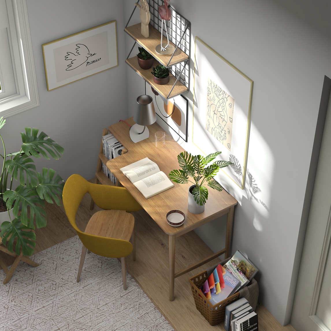 好奇书桌拥有可置物的“小梯子”,书架近身,让书本便于取阅。打造更整洁的桌面,设计中的小细节,让物品各归其位。