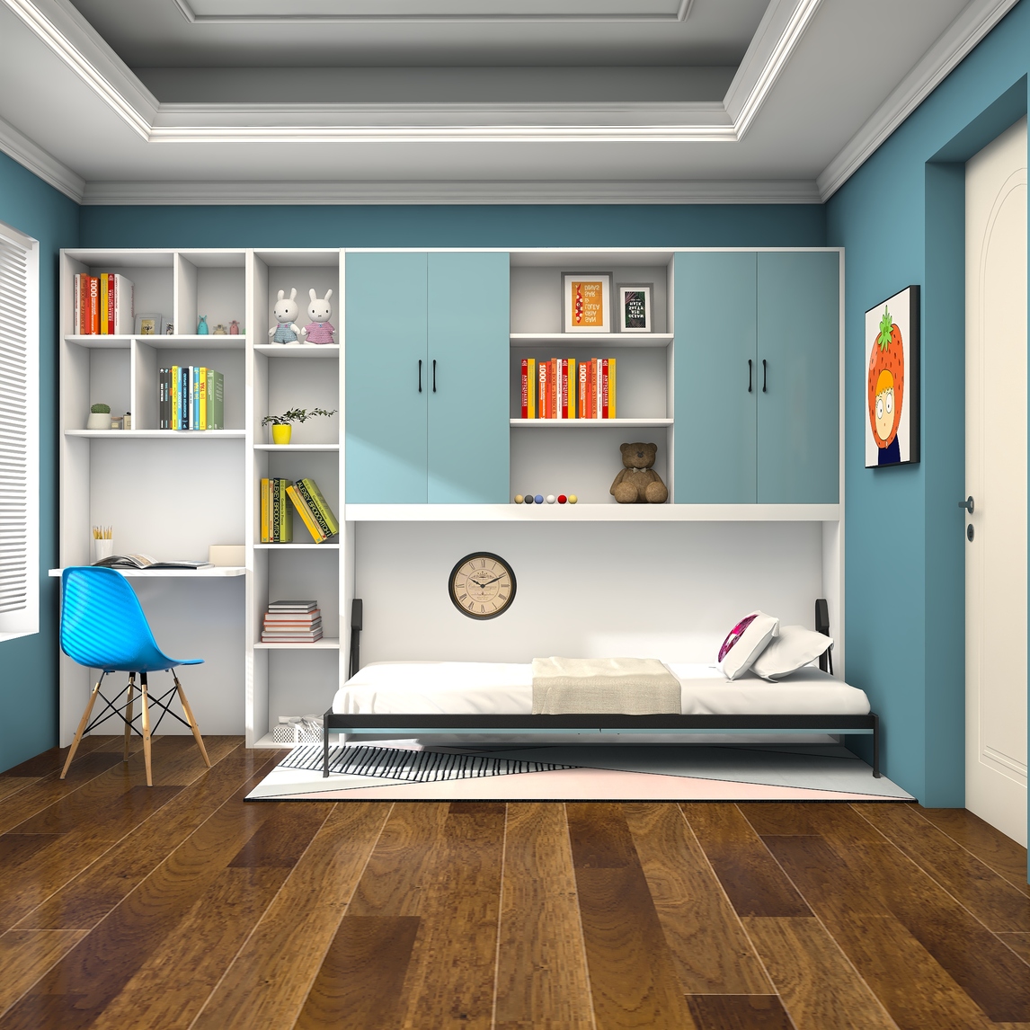 儿童房的家居环境都对孩子的性格和智力的养成有着不可忽视的作用。但小户型没有足够的空间支撑孩子的日常玩乐;这时候便就需要用到隐形床的设计了;侧翻的设计更省空间满足孩子的好动性格;上方布置成书柜或者玩具柜...展开