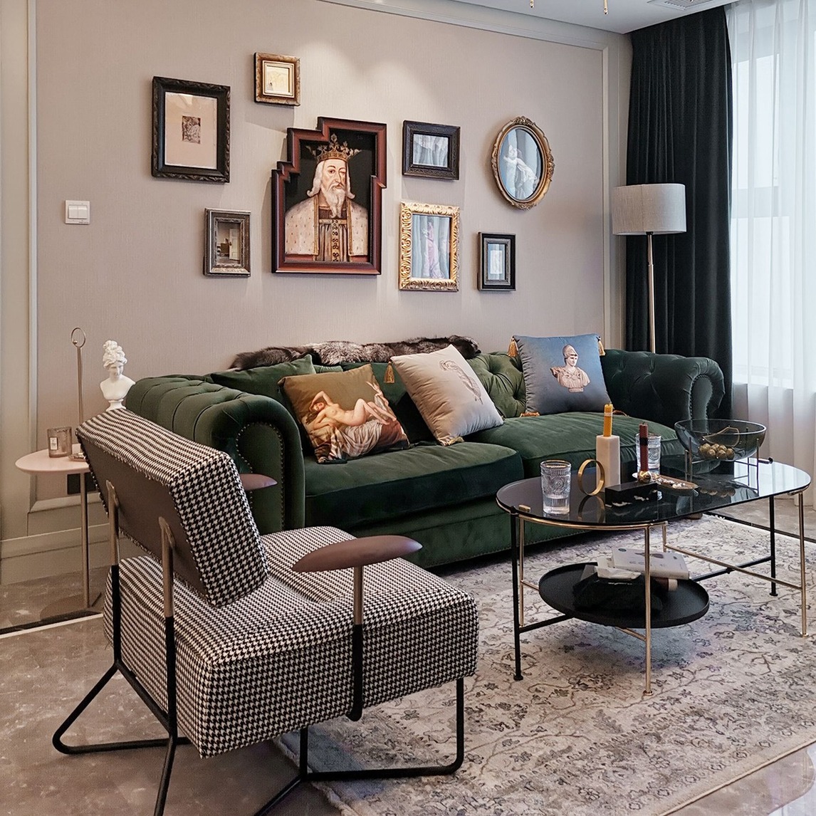 复古风格对大家来说并不陌生,很多酒吧,酒店,艺术馆都装修成这种风格,不过将它放入家中也能显得温暖有格调,也会带来更为与众不同的魅力,让小家变得别具一格。 墨绿色的沙发搭配上千鸟格单椅更显复古气息,墙面...展开