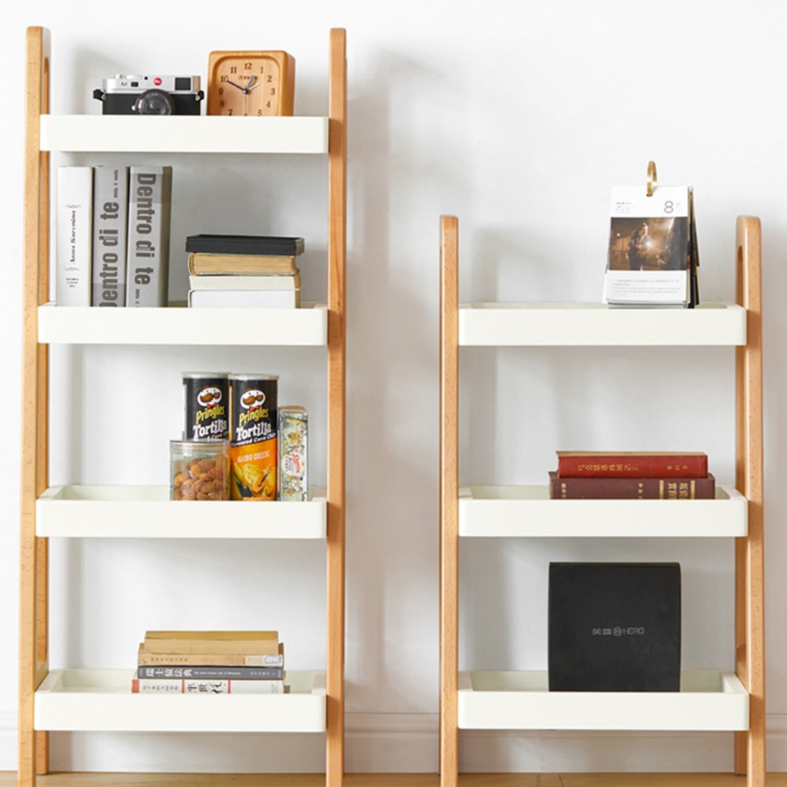 家里的书房其实简单舒适即可,如果你酷爱阅读,想要随处阅读的话,那么请在书房放一组这样的实木储物架,多层的置物架层,原木色和白色的碰撞非常讨喜,而且轻易简便一点,非常适合移动置物,超方便的。