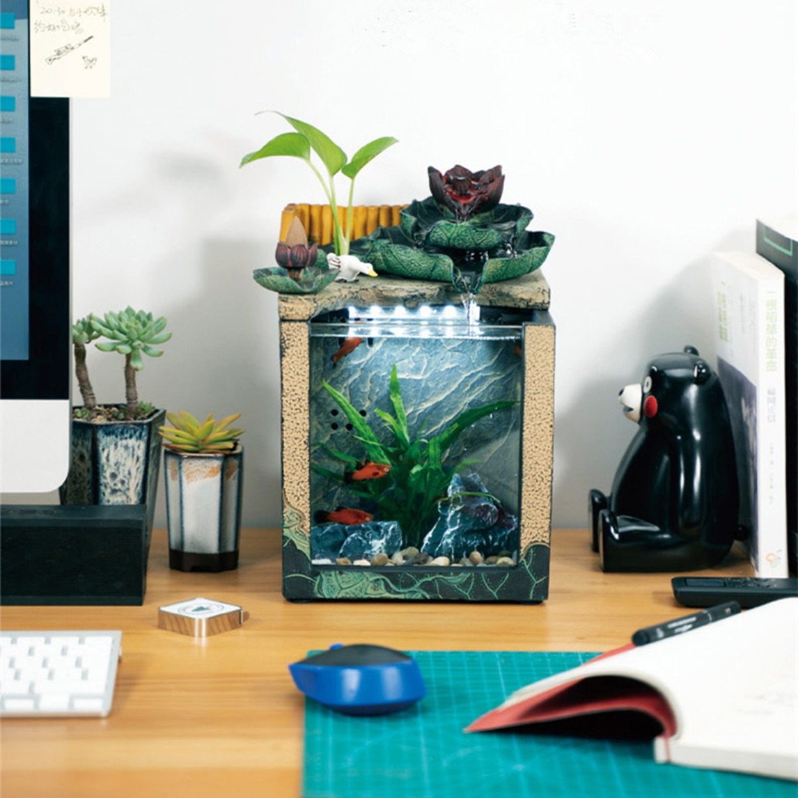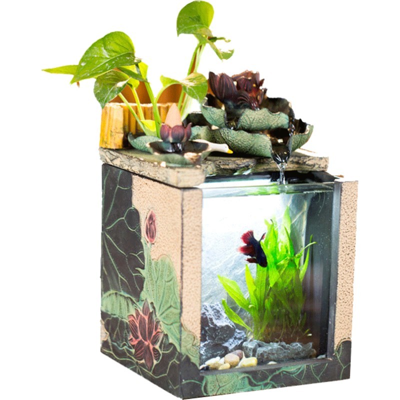桌面迷你景观小鱼缸流水摆件,能办公室解压利器,能养热带鱼,一个循环的生态鱼缸,绿色清新氧气就在身边!优质材料,高品质更通透更耐用抗划。种养一体,操作方便,
