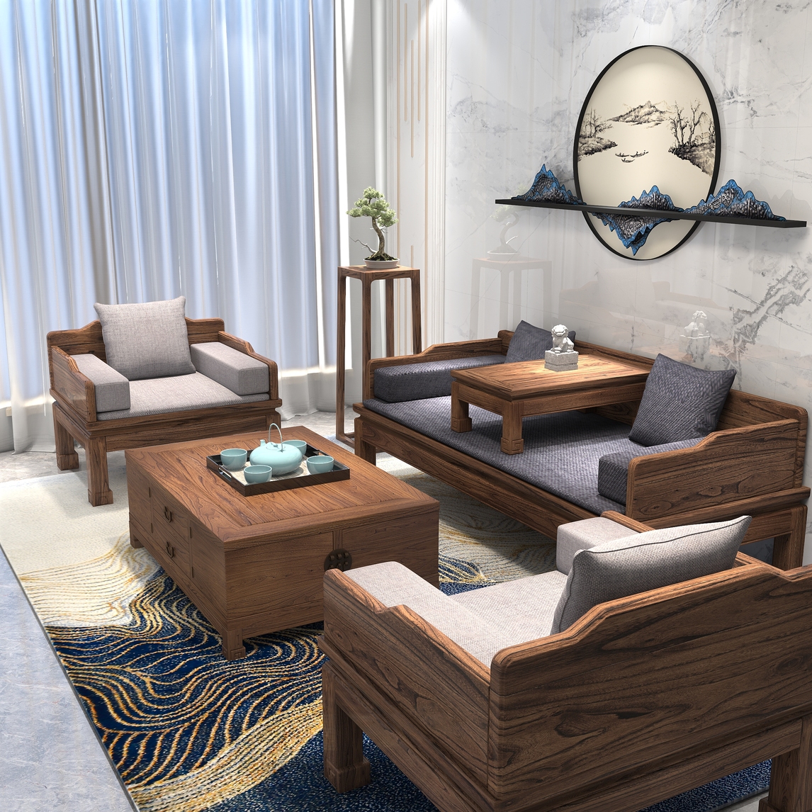 本案例采用了大理石沙发背景墙,搭配简约的新中式罗汉床,打造简约大气的新中式客厅,用罗汉床代替传统的沙发,增加儒雅的客厅氛围,同时还有禅意的气息。