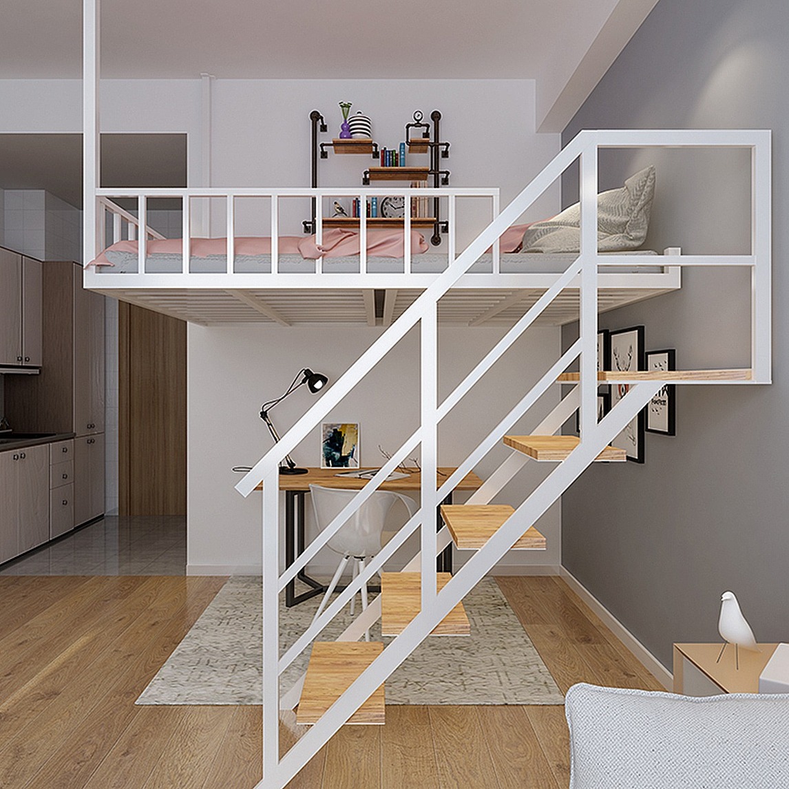这款创意的小清新风格的一款高架床,采用优质的铁艺材质制作而成,结实耐用,承重力强,使用寿命长,非常的实用。