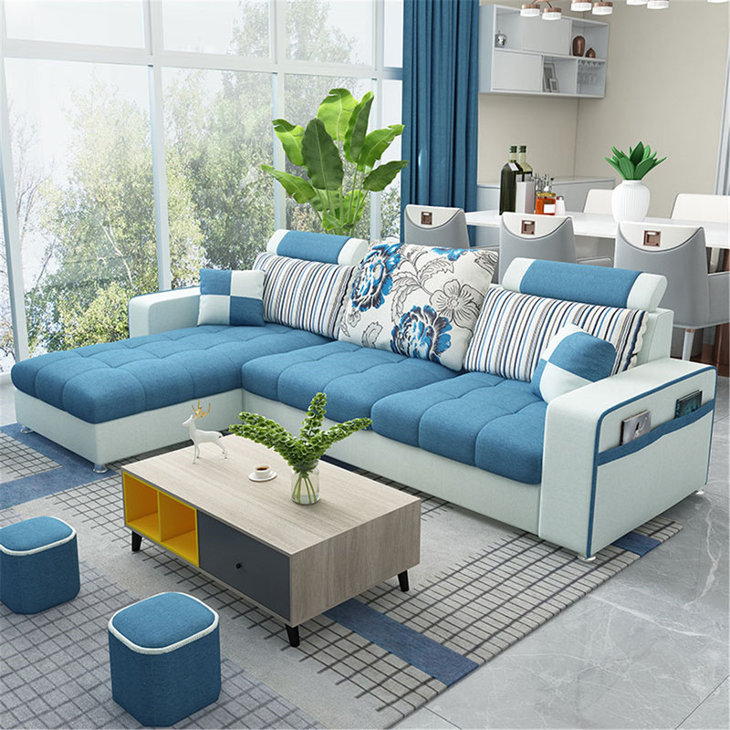 蓝白相间的布艺沙发,舒心生活的标配