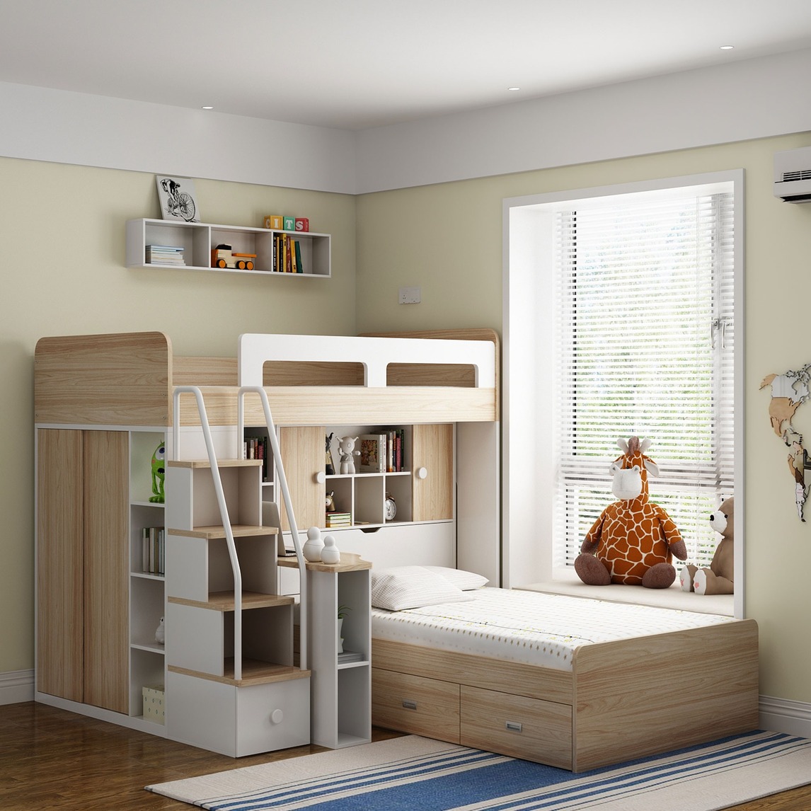 高低儿童床美观又实用,还有小巧的实木桌椅,一起营造北欧简约的生活氛围。不仅避免了传统的双人床那般的压抑又节省了空间