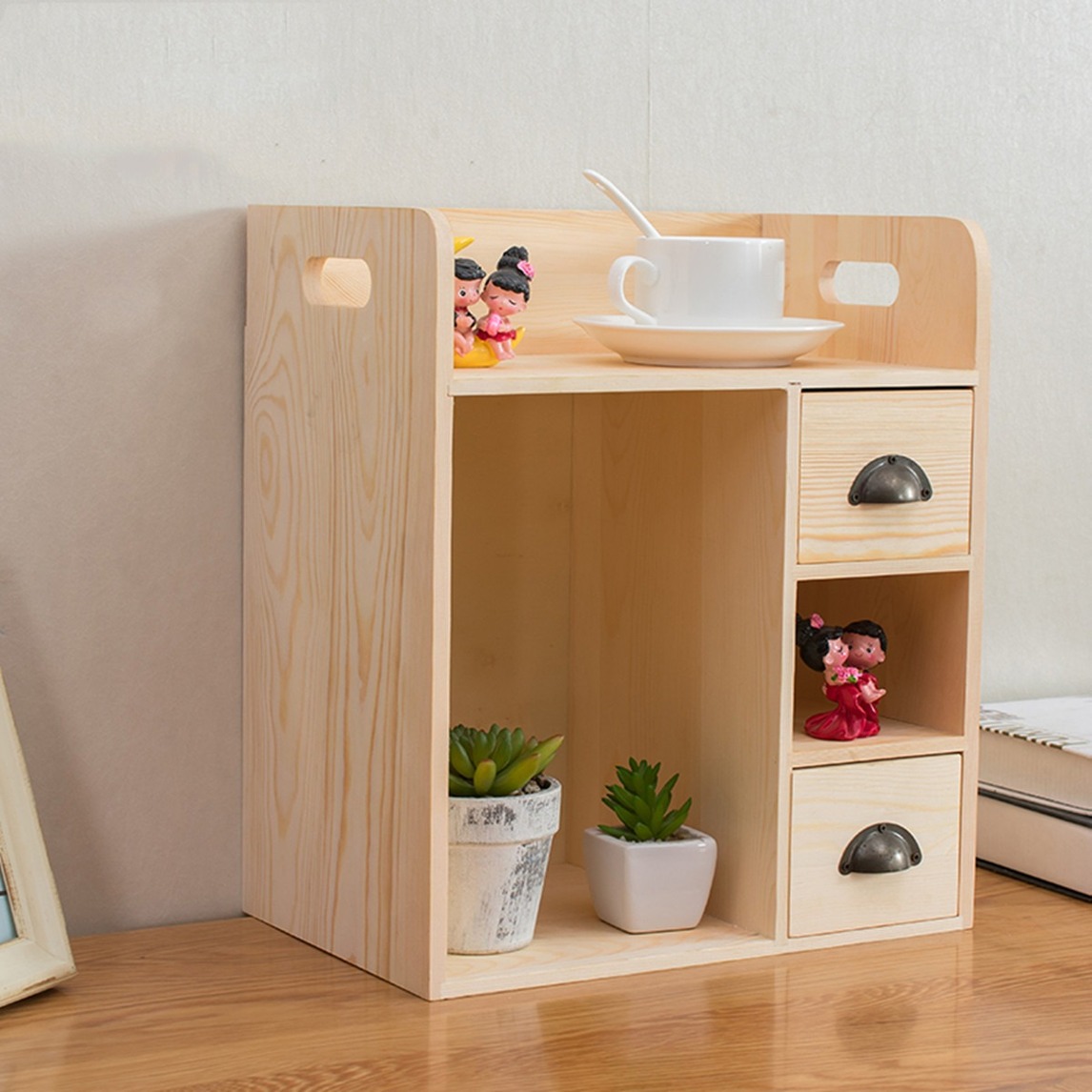 多功能实木收纳架,解决桌面零碎小物品的收纳问题,让生活变得井井有条,一件小物就能让书桌变得干净整洁。