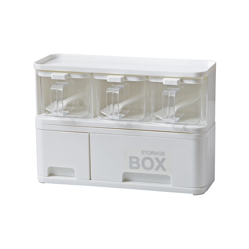 像这种组合套装抽屉式调料罐,看起来还挺不错的,双层采用分离式设计,也是相当实用了,而且顶部也能用来置物。
