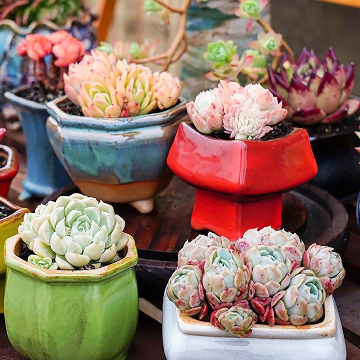 多种颜色的多肉花盆,粗陶材质,透气性良好,能营造最合适多肉生长的环境,让你的多肉茁壮成长,打造一个更美的阳台。