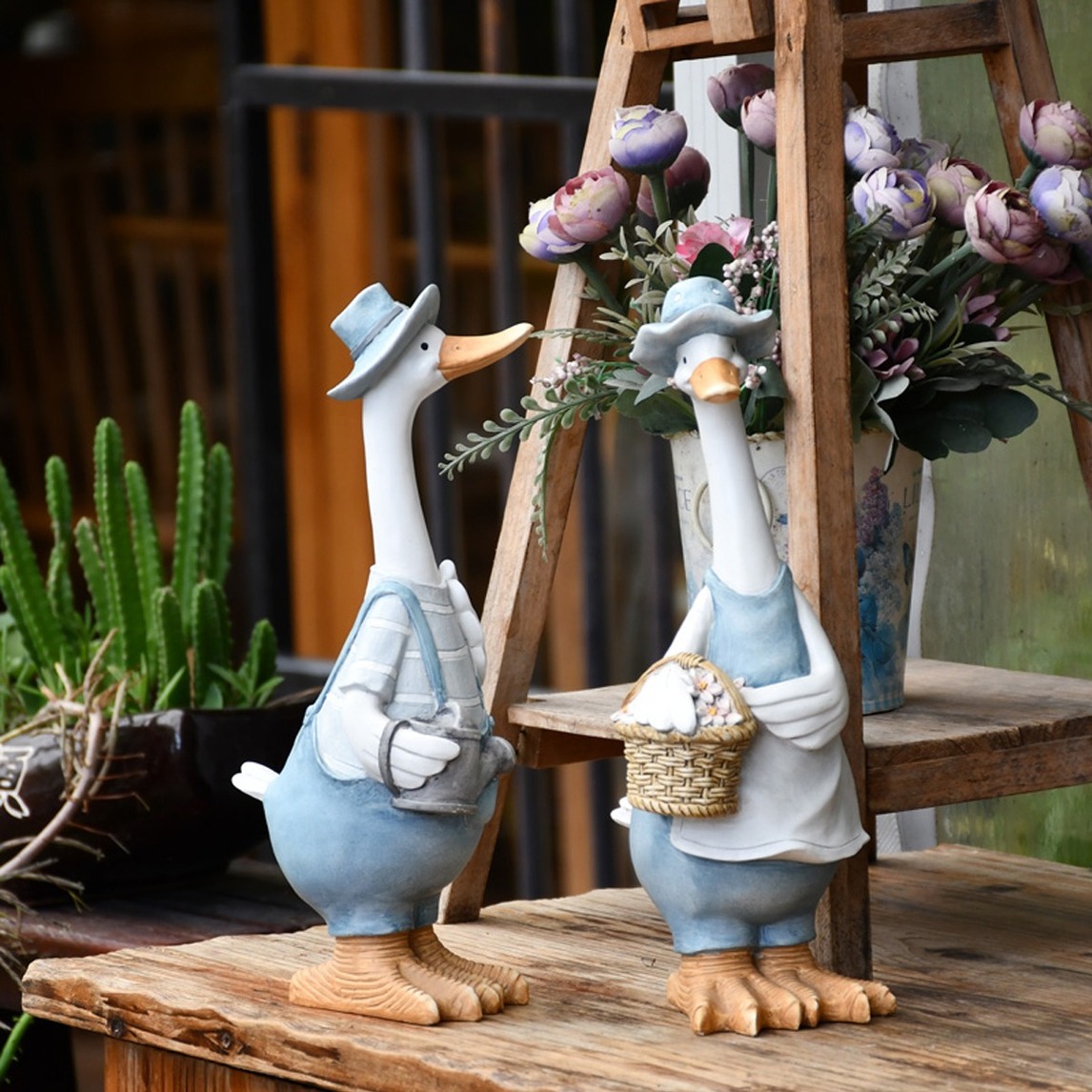 一对情侣鸭子,手提花篮和水壶,田园味道,相孺以沫,同甘共苦的夫妻鸭! . 辛勤的耕耘劳动。或许会让我们的花园更有爱的芬芳!