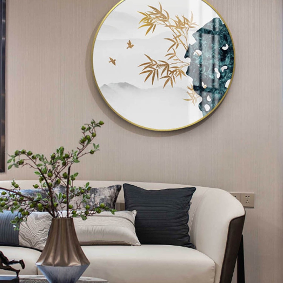 新中式的客厅,你们喜欢怎样搭呢?禅意十足的沙发,搭配一个精致的花瓶,几株仿真绿植也让人喜欢。最重要的就是沙发背后的背景墙,一定要挑好装饰画噢!