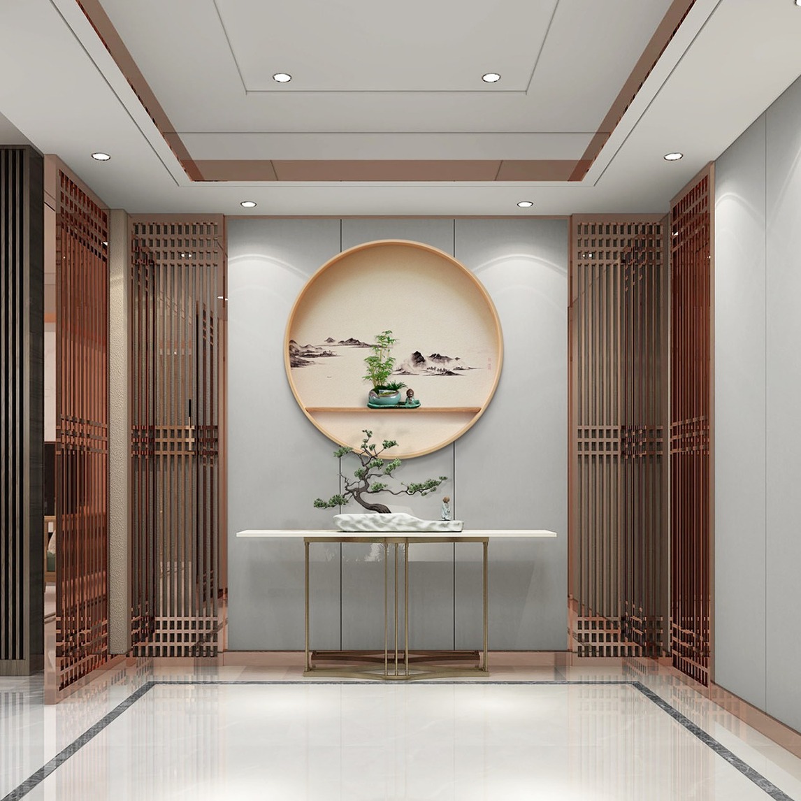 作为室内外的必经之地,传统中式玄关不同的是,现代背景演绎下的新中式不再钟情于繁琐与沉闷,新中式圆形置物架、铁艺玄关架、带有禅意又有现代审美元素的玄关设计,集静谧与清雅为一体,宛如一首凝练的诗歌。
