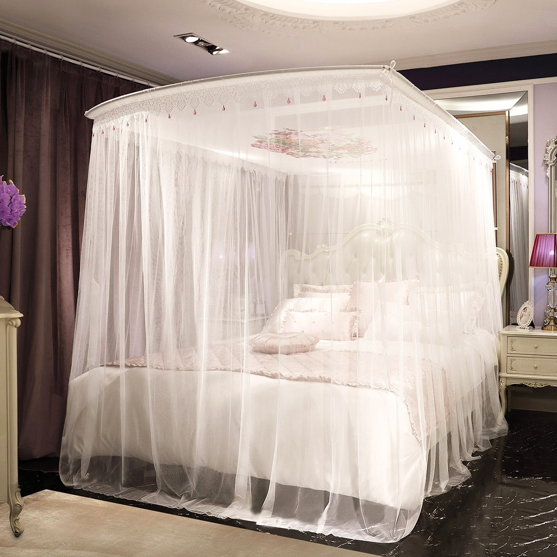 顶部是不锈钢管材的伸缩杆,在不需要的时候只要收起来就好,非常方便。在卧室完全撑开后,犹如皇室贵族的寝殿卧床,大气又奢华。