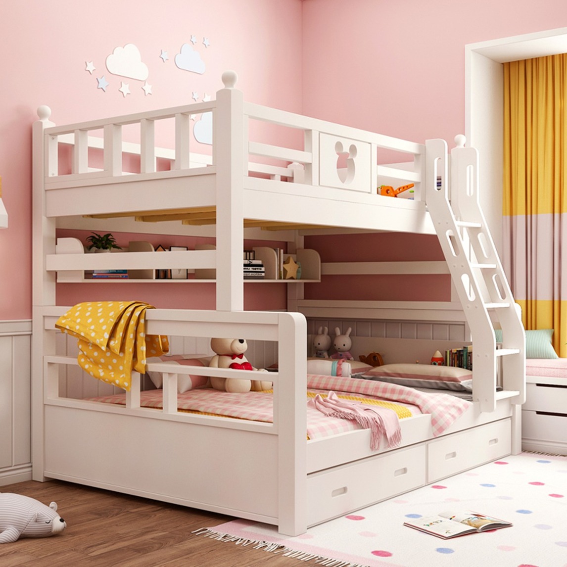 舒适温馨的儿童房,环保健康的儿童床。伴随孩子们能够在一个安全健康舒适的环境内快乐成长。欧倍丝儿童床充分利用床体结构,让每个部位都不那么空闲,强效收纳。
