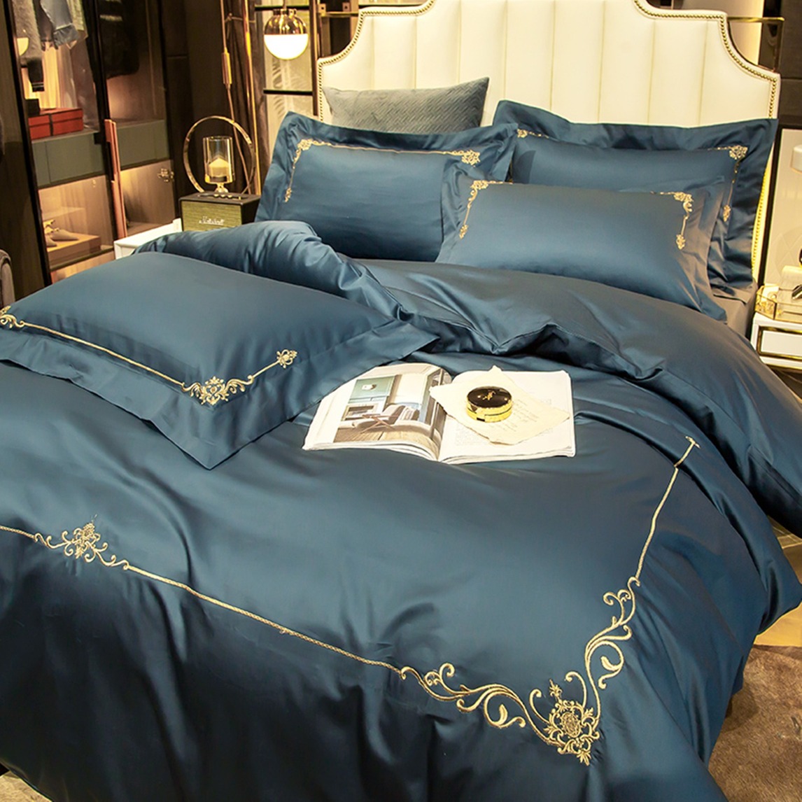 富有光泽的贡缎面料,辅以精致的欧式刺绣工艺,给卧室空间增添优雅和精致的格调。面料材质使用优质长绒棉,质地柔软细腻,透气性能非常好。