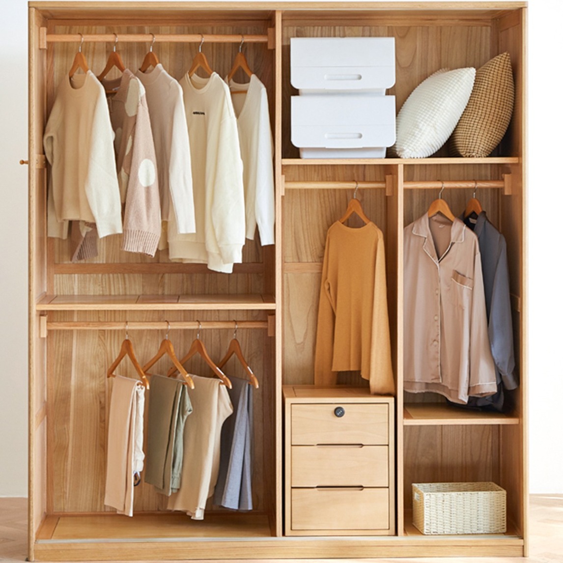 浑然天成的实木纹理,有着其他质地无法取代的自然之美。而不同材质的搭配,让衣柜看起来更有层次感,打造日式文艺范。