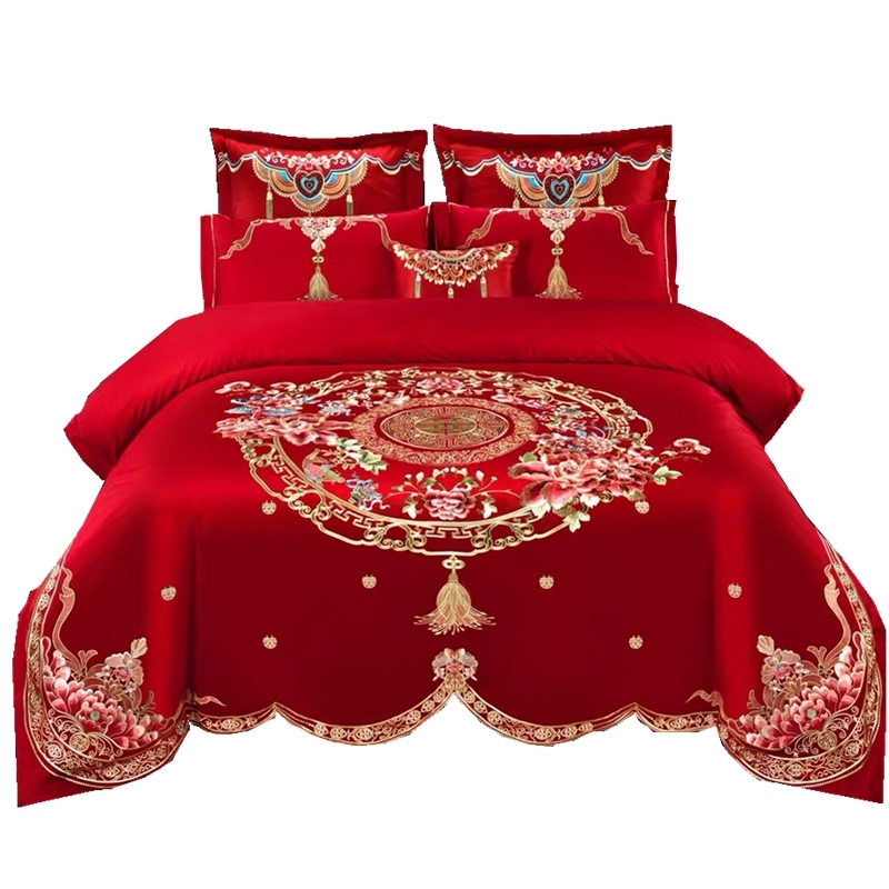 诠释雅致清新古典情怀。中式婚庆床品,见证幸福时刻。精美的刺绣工艺,代表着浓烈的祝福,栩栩如生的花朵,盛开着幸福。