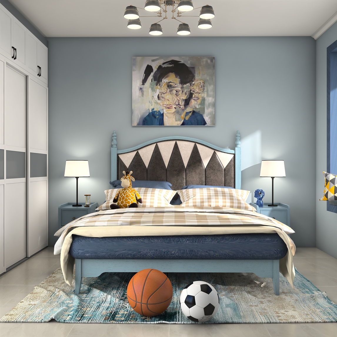 卧室作为休息的区域,所以要宽敞实用,地中海风格的家具陈设让整个房间都充满着朝气,让孩子们感受到年轻和积极的态度。