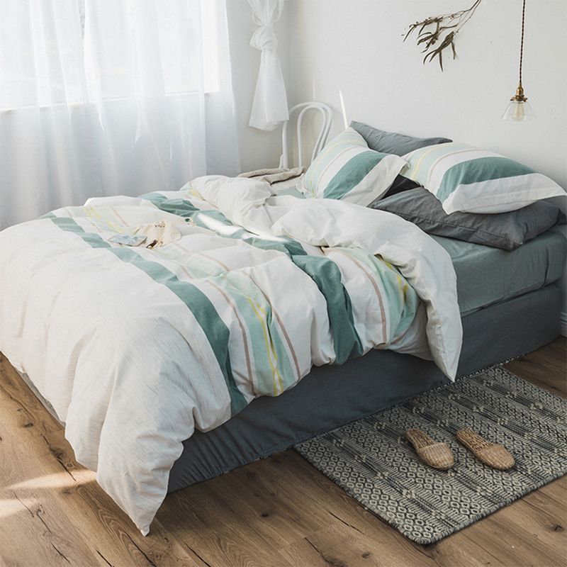 白色给人干净纯洁的感觉,白色系卧室更是有助于放松神经,提升睡眠质量。日式白色墙壁和窗帘,简单绿色点缀的白色四件套,简约而不简单。