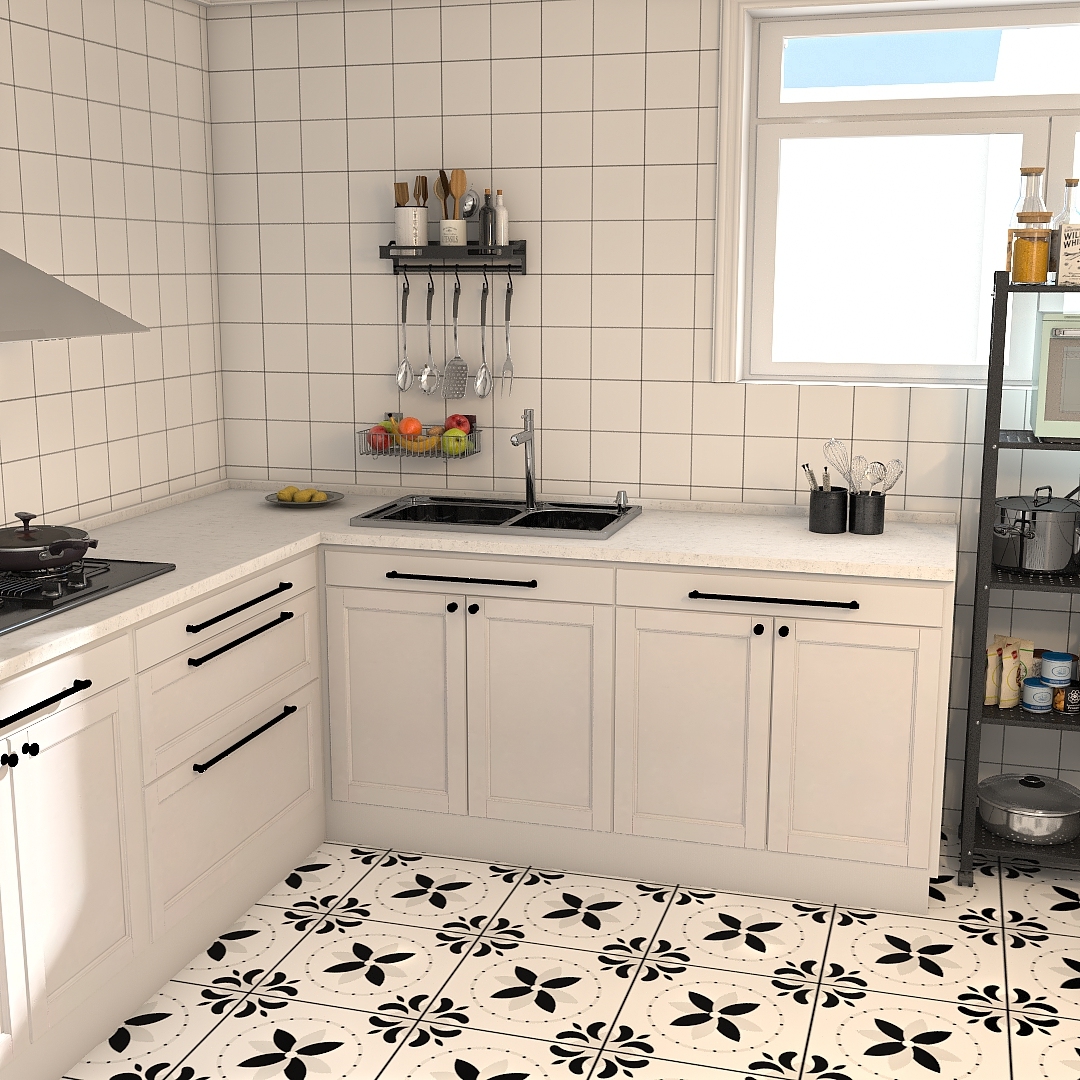 厨房承载着一家人的饮食,除了该有的烟火气,厨房中主要运用了白色调来进行设计,墙面选用北欧白格子贴纸,地面白底黑边的地贴。贴纸都是自己可以操作的自粘的。简单环保哟!整体清爽不单调,看起来简洁又不失优雅气...展开