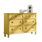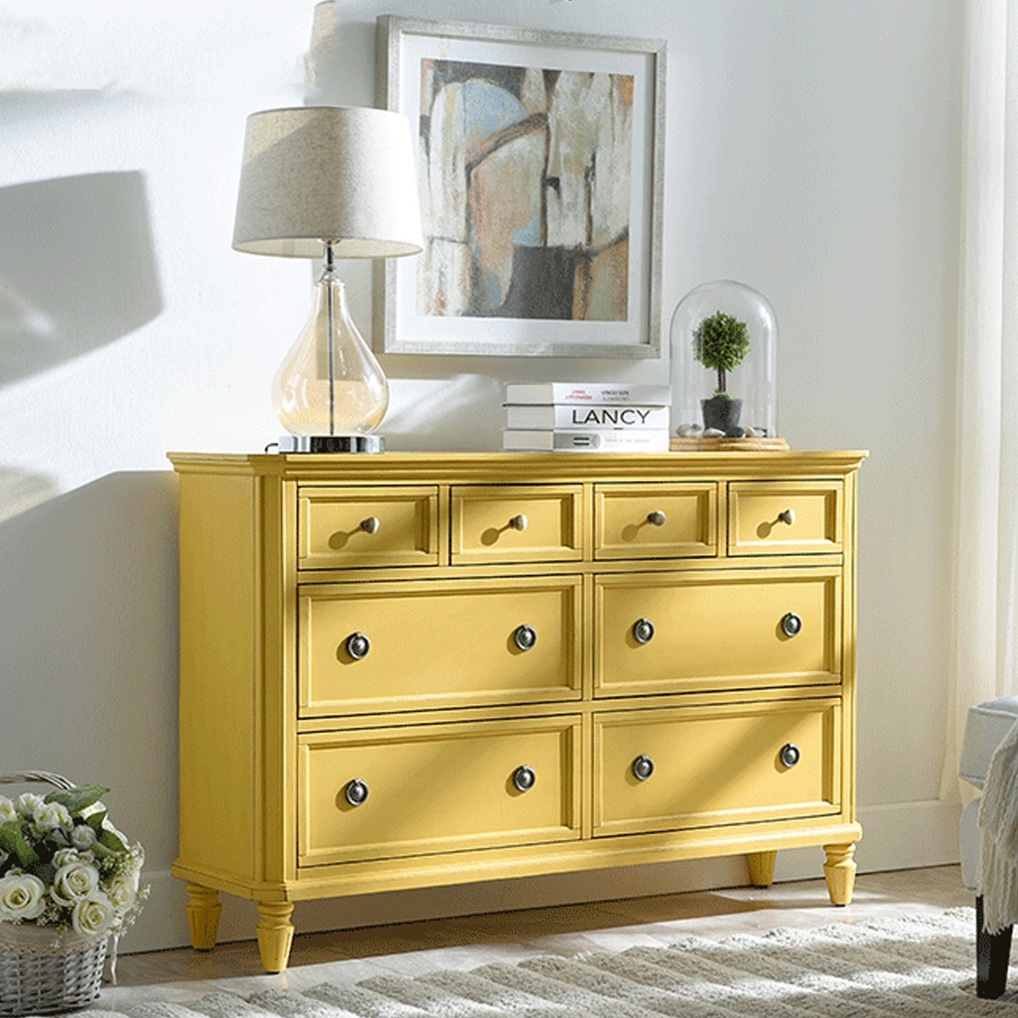 全屋低饱和度的浅色调搭配,但客厅的那一抹亮黄色斗柜这样摆放,实在很撩~5抽设计,可以轻松容纳大小物件,充足的储物功能尽显无疑。